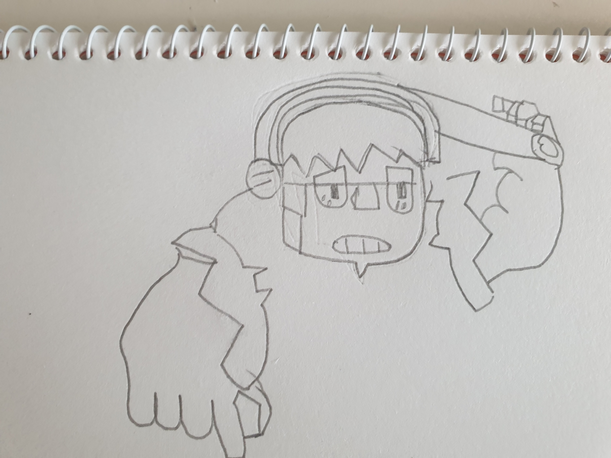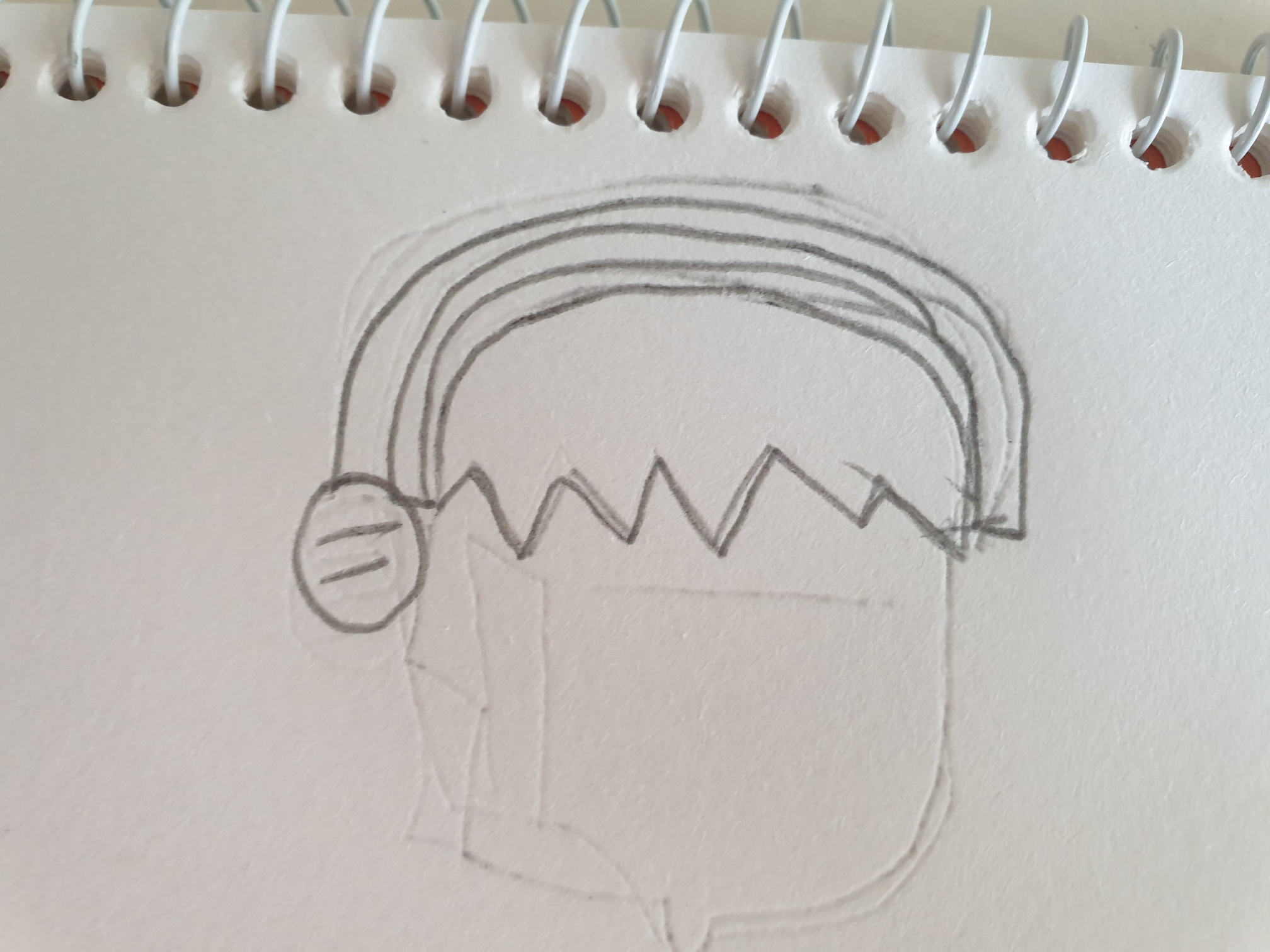 이런 아래로 삐죽삐죽한 머리카락이 완성 되었습니다. 이젠 헤드셋(?)을 그려보겠습니다.