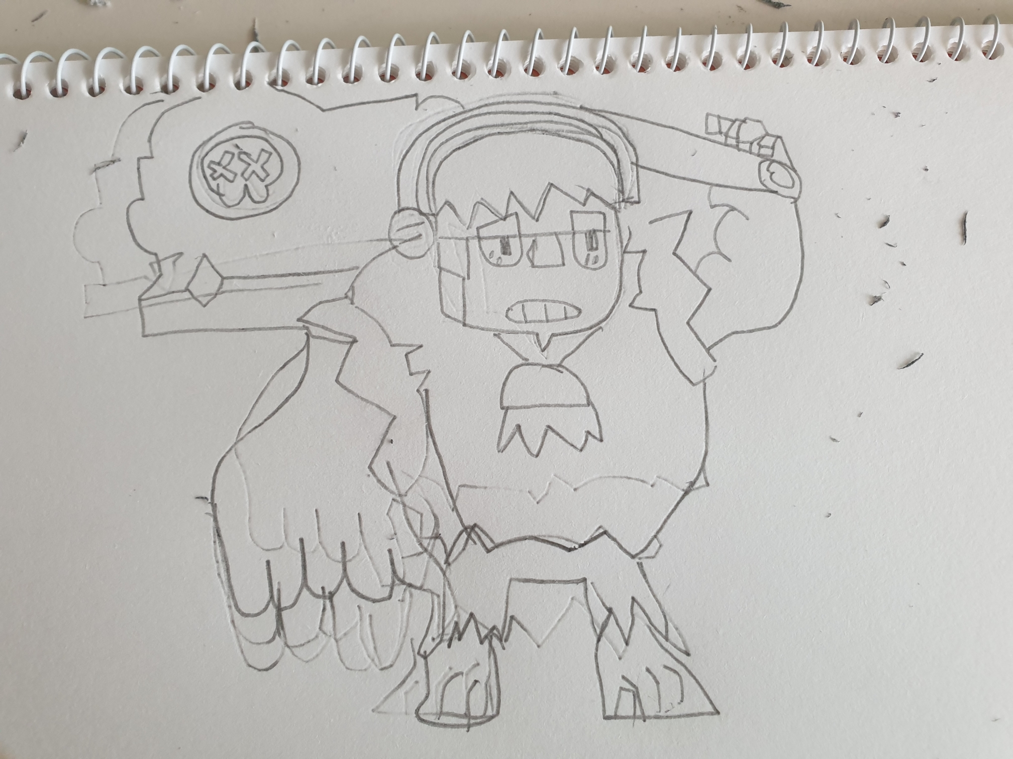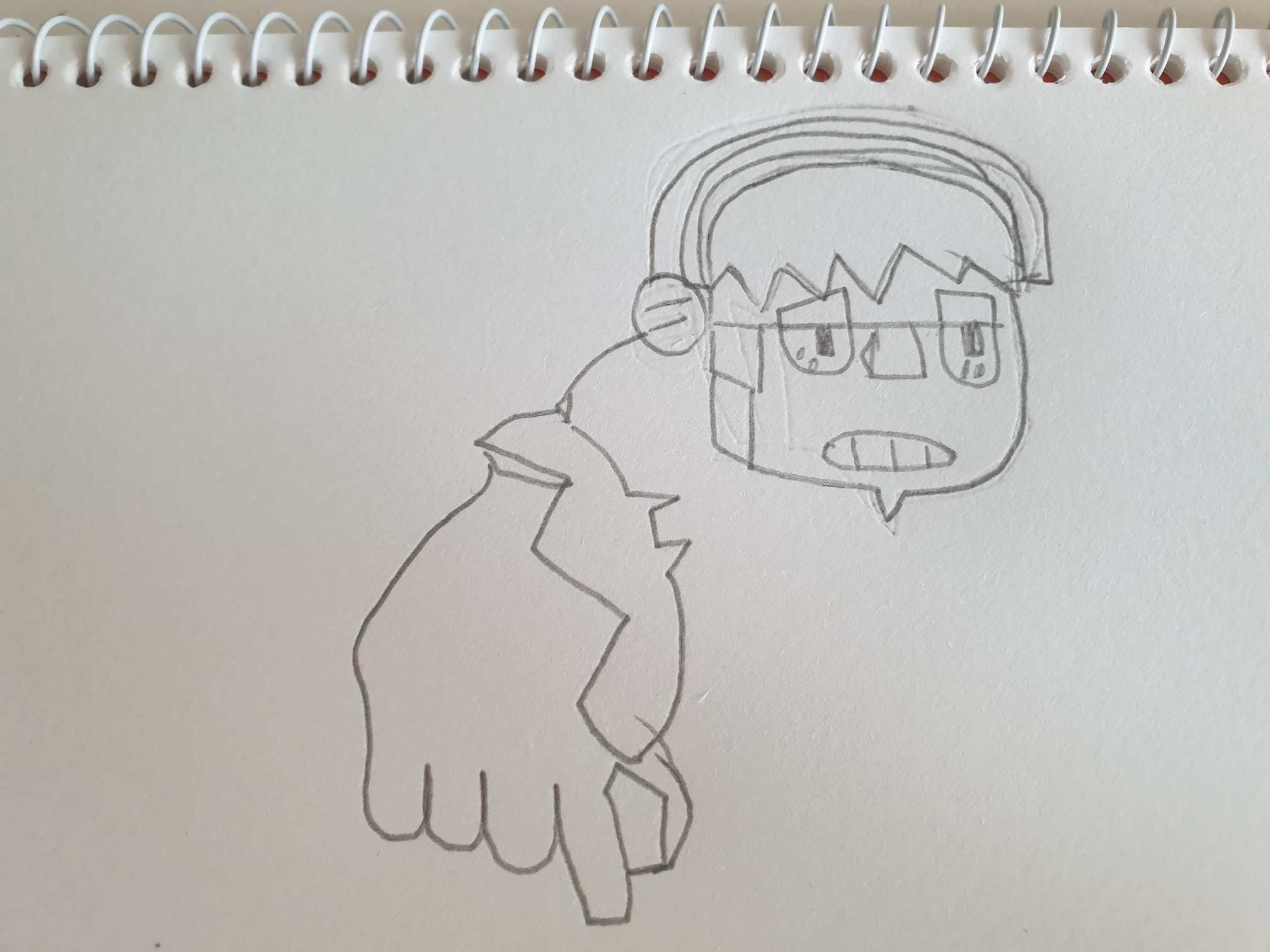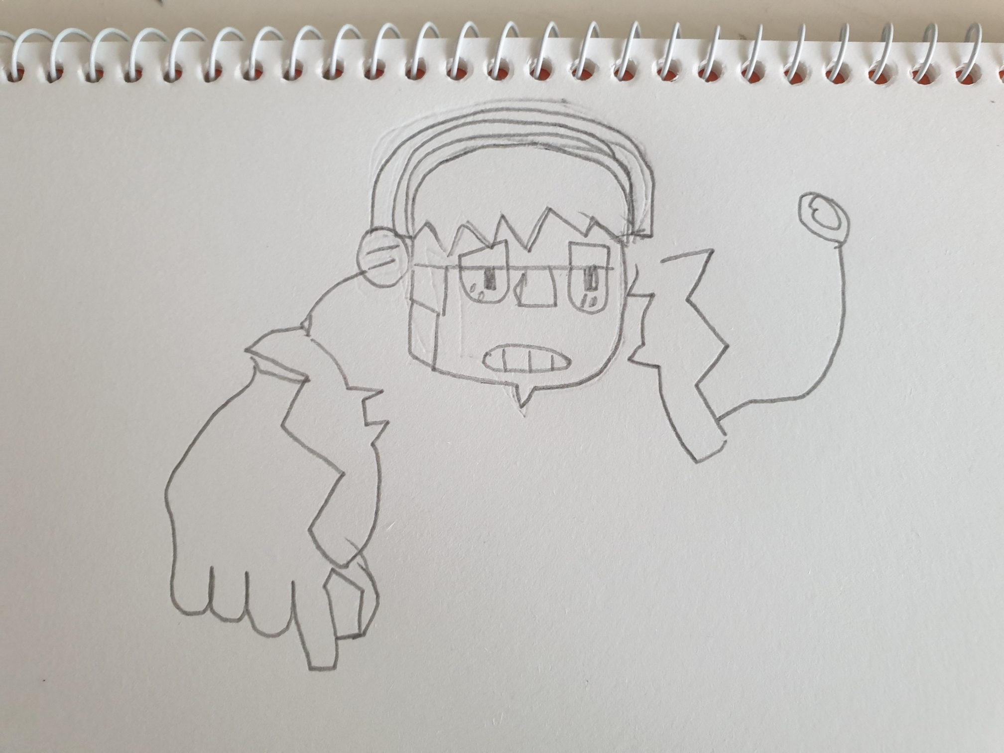 바로 오른팔을 그리진 앉고 다음 단 게에서 오른팔과 망치 손잡이를 그리는 겁니다.