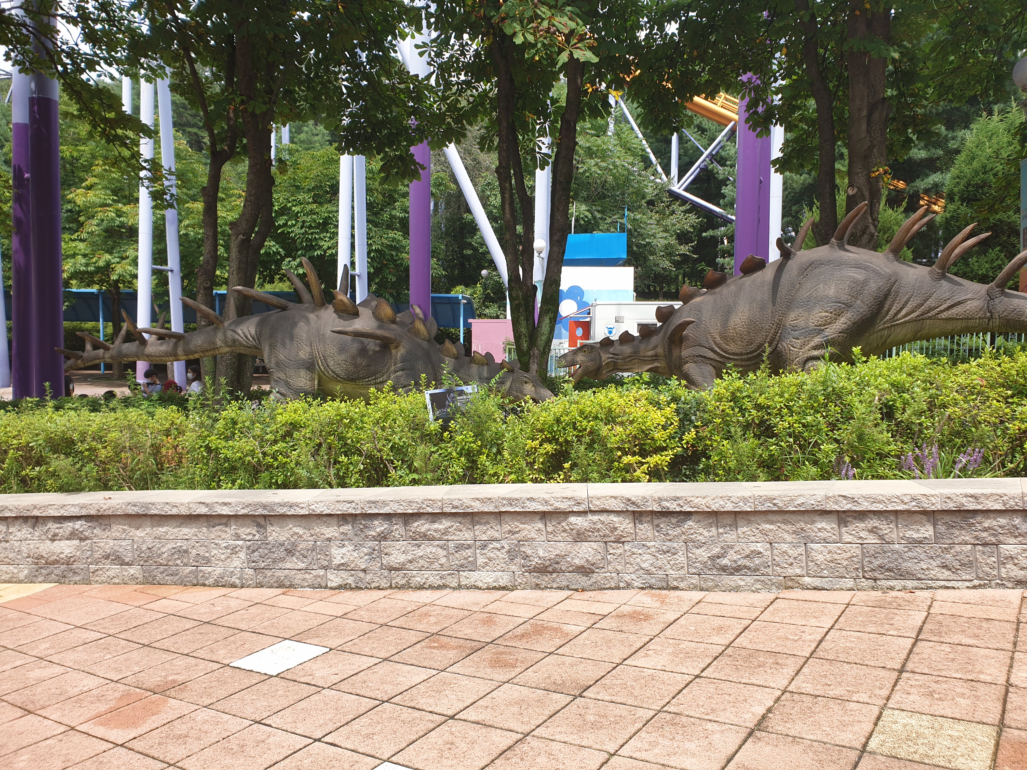 들어갔을때 처음으로 저희를 반겼던 건 열심히 풀을 뜼어 먹던 스태고사우르쓰 였습니다. 계속해서 들어가다가 처음으로 탄 놀이기구는...