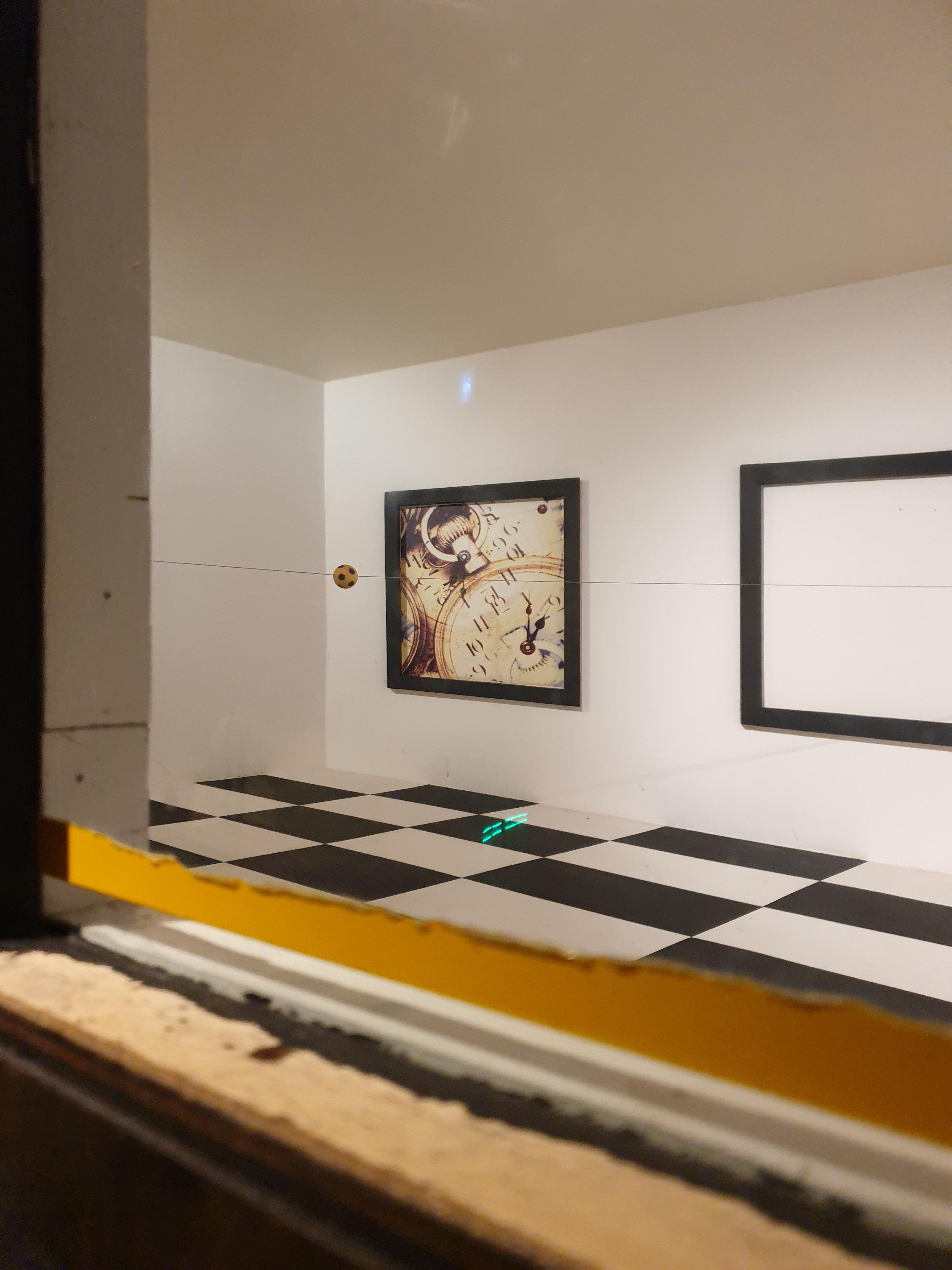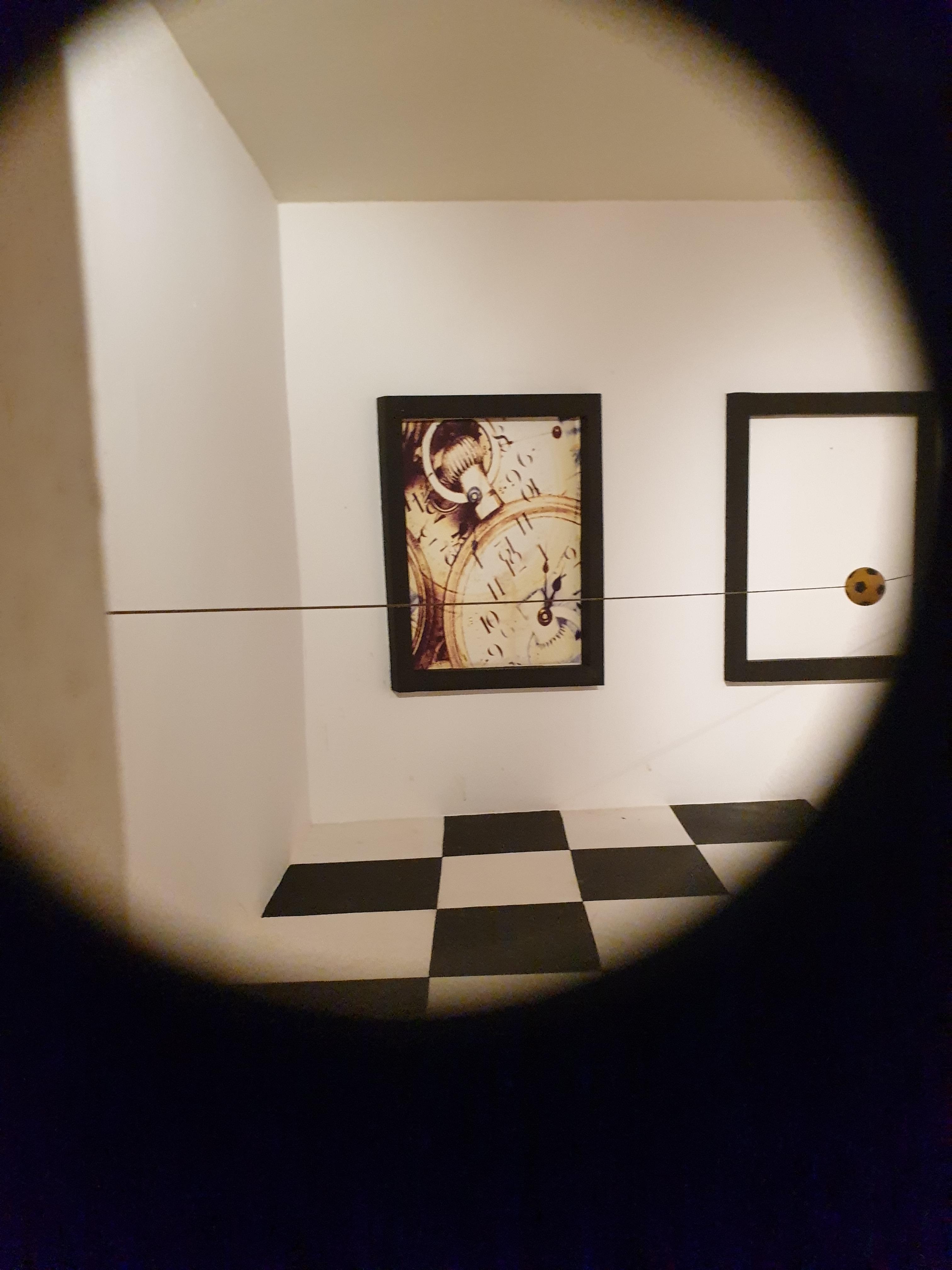 반대쪽에 나있는 작은 구멍으로 보면은 똑바로 보이는 착각에 방 왜에 더 많은 방이 있습니다. 그럼 박으로 나가서 다른 놀이기구를 타보겠습니다.
